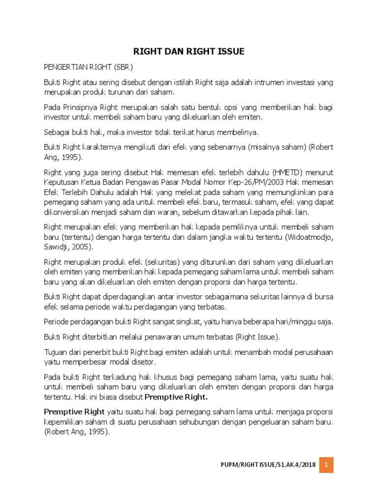 Contoh soal dan jawaban perhitungan right issue. Dengan demikian, jawaban yang tepat untuk soal tersebut ialah sumber daya alam atau pilihan jawaban nomor 1. Itulah contoh perhitungan sederhana dari perhitungan kepemilikan saham setelah melakukan right issue maupun private placement. Sebagai contoh, tabung merupakan hasil perputaran persegi panjang mengelilingi sumbu tegak sejauh 360 ∘. Contoh soal dan jawaban right issue.